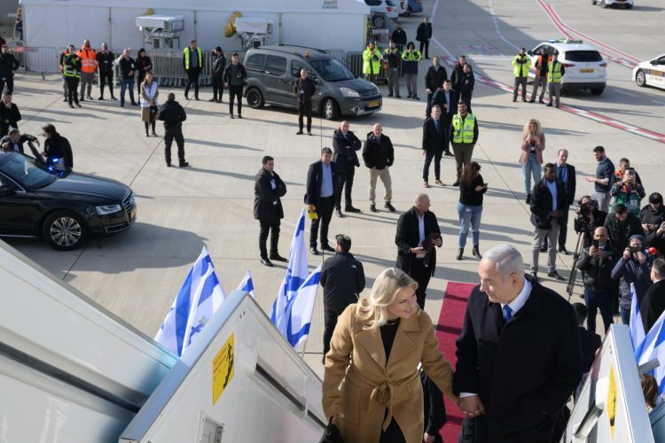 Benjamin Netanyahou et sa femme Sara au moment de monter à bord