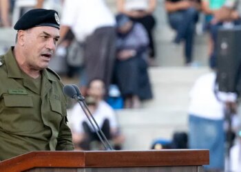 Lors de la cérémonie de remise des diplômes du cours de formation des officiers de combat, jeudi, Eyal Zamir, chef...