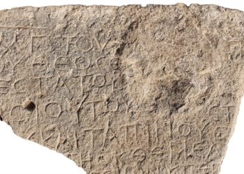 Inscription en pierre découverte dans les fondations d'une église de l'ère byzantine dans la vallée de Jezreel. Les fouilles menées...