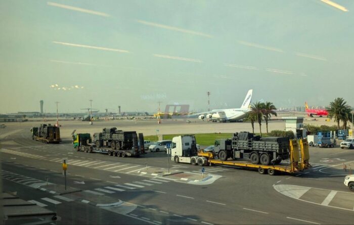 Un avion de transport Antonov An-124 a atterri hier à l’aéroport Ben Gourion, chargé de camions militaires américains Oshkosh équipés de nombreux matériels militaires.