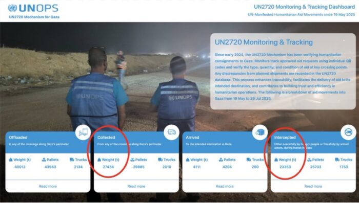 L’ONU a elle-même admis que 87 % de ses 2 010 camions alimentaires à Gaza entre le 19 mai et le 29 juillet 2025 ont été détournés par le Hamas.