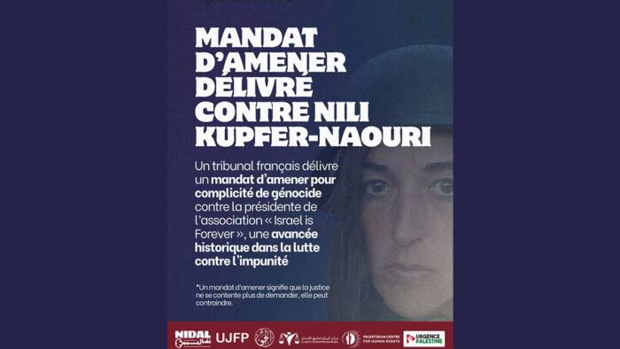 L’association Israel Is Forever a pris connaissance de l’émission par la justice française d’un mandat d’amener visant sa présidente, Maître Nili Kupfer-Naouri, dans le cadre de procédures l’accusant notamment d’« complicité de Génocide, provocation publique direct au génocide suivi d’effet, complicité de crimes contre l’humanité; atteinte à la vie, persécution, et autres actes inhumains