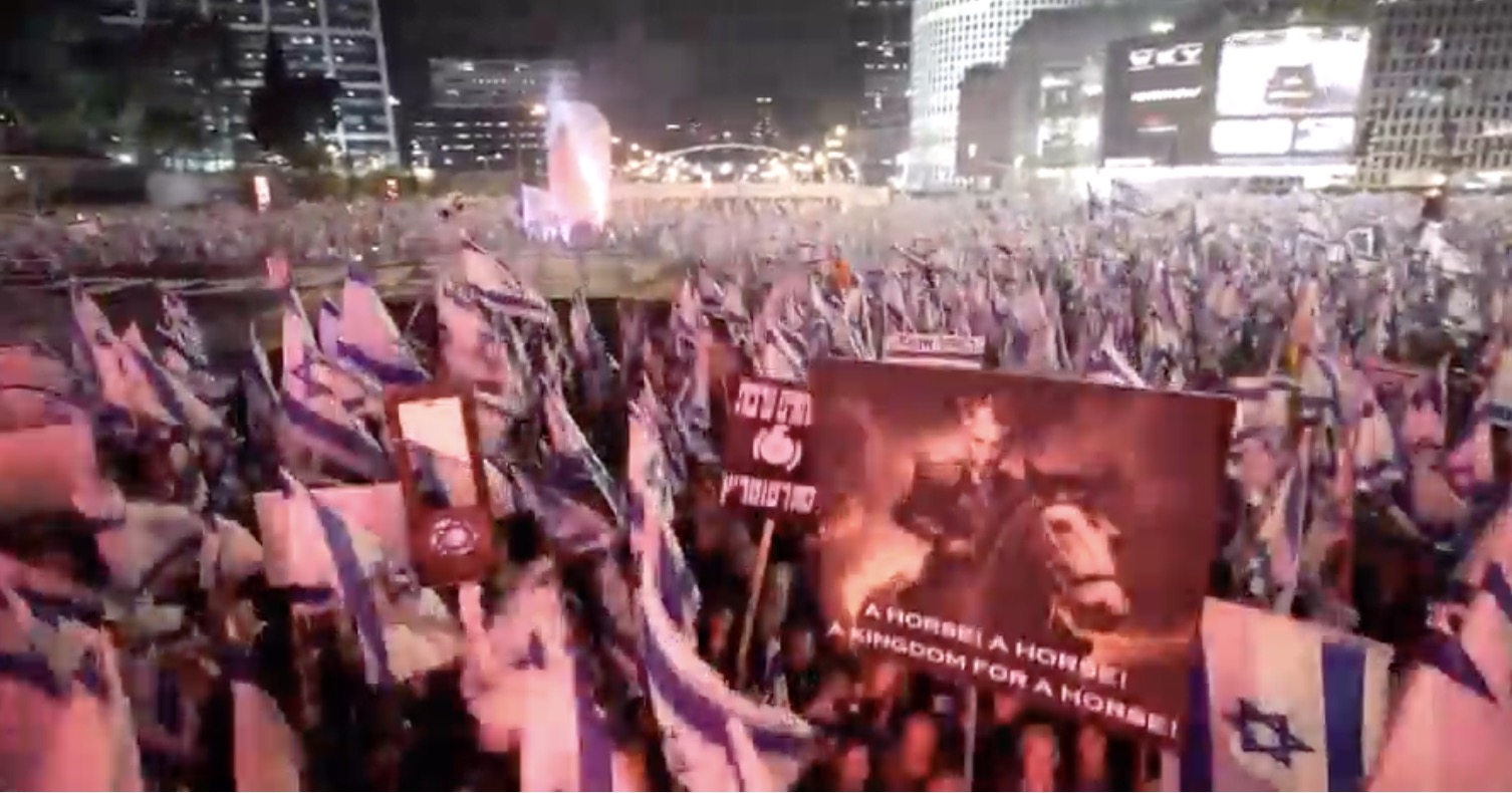 Manifestation contre la réforme judiciaire à Tel Aviv : notez qu'il y a plus de drapeaux que pour célébrer l'Etat d'Israël