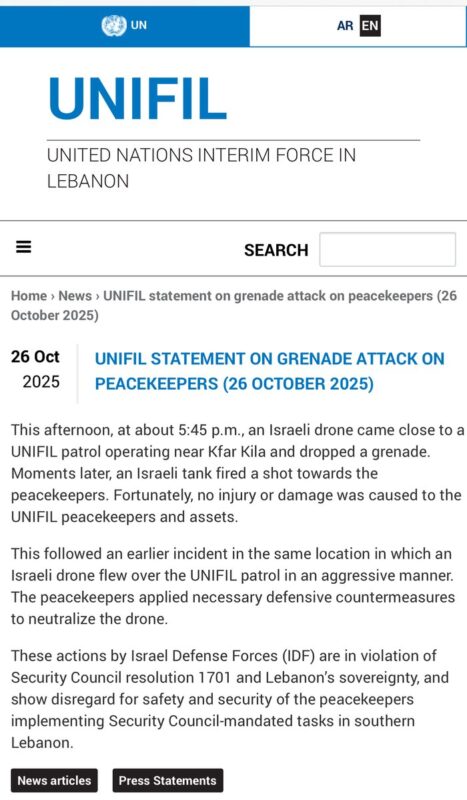 Plus tôt, les troupes de la FINUL avaient abattu un autre drone israélien en légitime défense après qu’il se soit approché de manière agressive du groupe.
