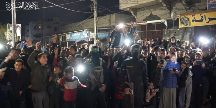 Le Hamas et le le Jihad islamique remettent les otages du 5e échange à la Croix-Rouge, à Gaza.