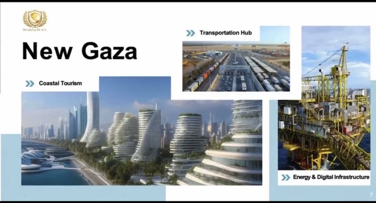 A Davos, Jared Kushner, le gendre du président et fils de l’ambassadeur des Etats-Unis en France, a officiellement dévoilé le « Projet Sunrise », un plan de 32 pages qui réimagine fondamentalement la bande de Gaza non pas comme une zone de conflit, mais comme un pôle immobilier et technologique mondial de premier plan, bref : Dubaï.