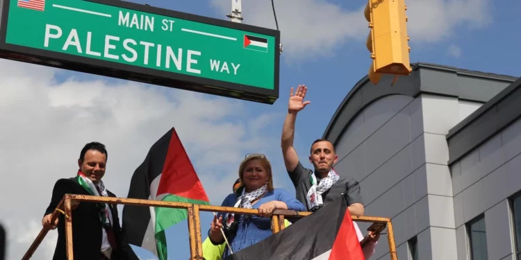 Plus de 5 000 personnes, agitant des drapeaux palestiniens, ont assisté au début de la semaine à la cérémonie la pour renommer une section animée d’une rue principale au nom dans la ville de Paterson de l’État américain du New Jersey, siège du comté de Passaic située dans la banlieue ouest de New York.