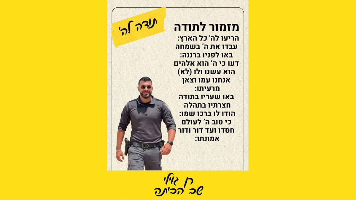 Le 07/10 Ran Gvili alors qu’il était blessé à l’épaule, pratiquement tout seul a sauvé le kibboutz Aloumim.