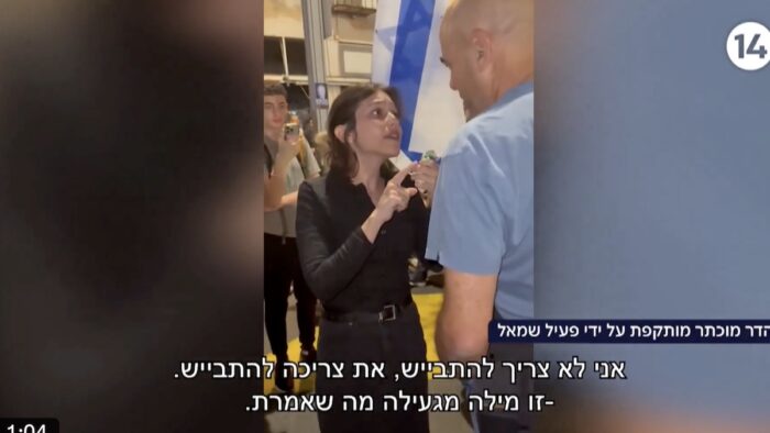 « Pourquoi avez‑vous diffusé une vidéo sur des soldats de l’armée ? Guy Peleg, n’importe où dans le monde, vous auriez besoin d’une escorte policière pour atteindre votre voiture afin de ne pas être bloqué. »