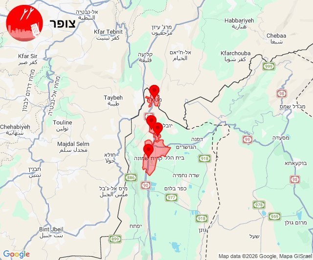 Hier 23:58 Premier rapport faisant état d’une chute à Kiryat Shmona