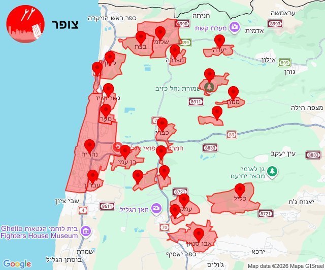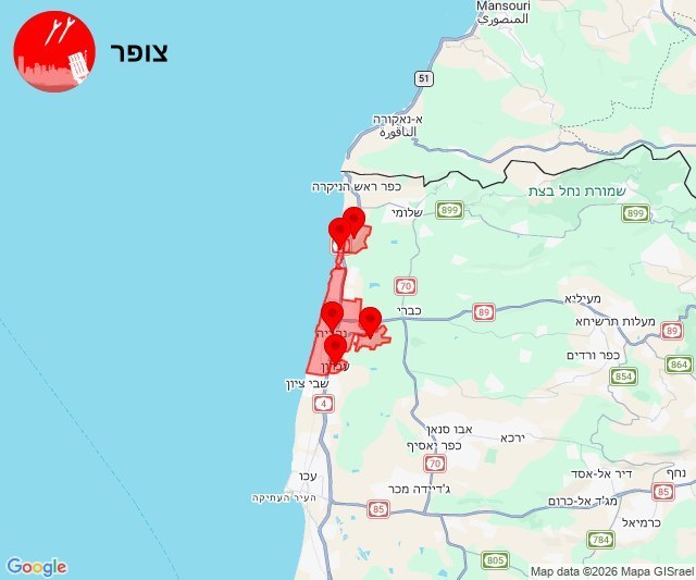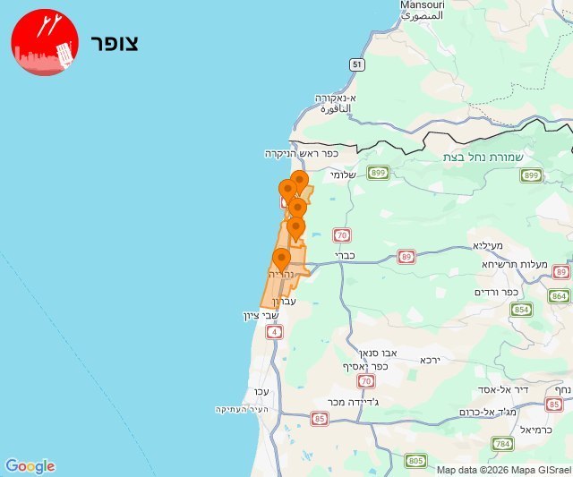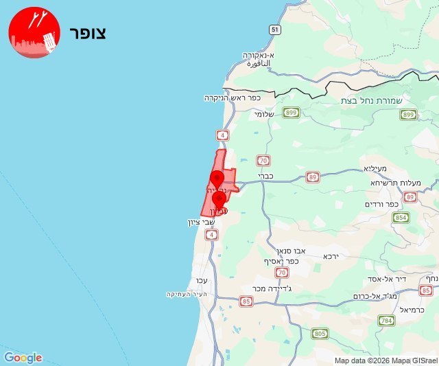 Hier 22:53 Alarmes à Nahariya et dans les environs