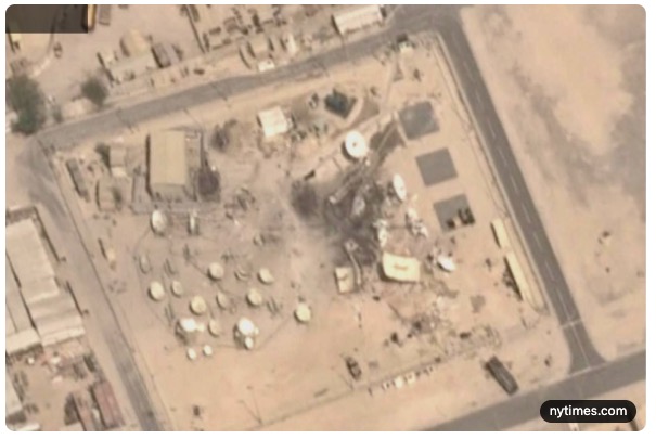• 07:02 Une image satellite publiée par le New York Times : de lourds dégâts ont été causés pendant la guerre à la base Eagle 44 dans le sud de l’Iran, non loin du détroit d’Hormuz, qui avait été précédemment signalé comme pouvant servir aux avions SU35 qui devaient arriver de Russie. Les images montrent des impacts dans les tunnels de sortie de l’abri des avions sous la crête montagneuse, et tous les avions à l’intérieur ont été piégés sans possibilité de sortie. De plus, l’accès aux pistes de décollage a été neutralisé, et des monticules de terre sont visibles sur les pistes – probablement une tentative des Iraniens d’empêcher l’atterrissage d’avions ennemis à la base.