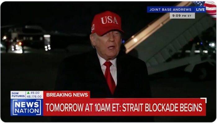 07:48 Trump avertit qu’à partir de 17h00, heure d’Israël, « les États-Unis bloqueront les navires entrant ou sortant des ports iraniens »