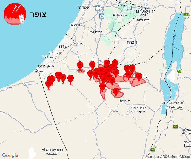 • 01:43 Les lancements vers le centre sont tombés en zone dégagée. Commandement du Front intérieur : Il est possible de quitter les zones protégées.