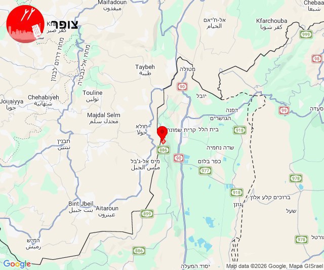 • Hier 22:26 Alerte à Metula