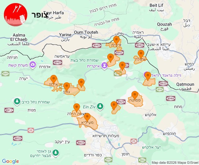 • 09:02 Nouvelles alarmes dans la région de Kiryat Shmona