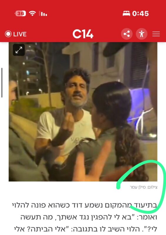 • 23:28 Le militant de droite Mordechai David a été arrêté devant le domicile de Lucy Aharish.