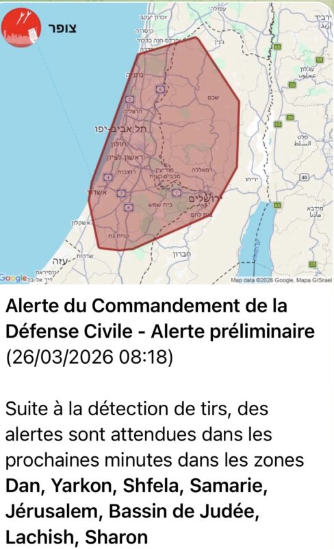 08:52 Préalerte tirs de missiles depuis l’Iran dans le centre