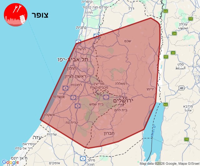 06:55 Alarmes au centre, Jérusalem, Judée et Samarie