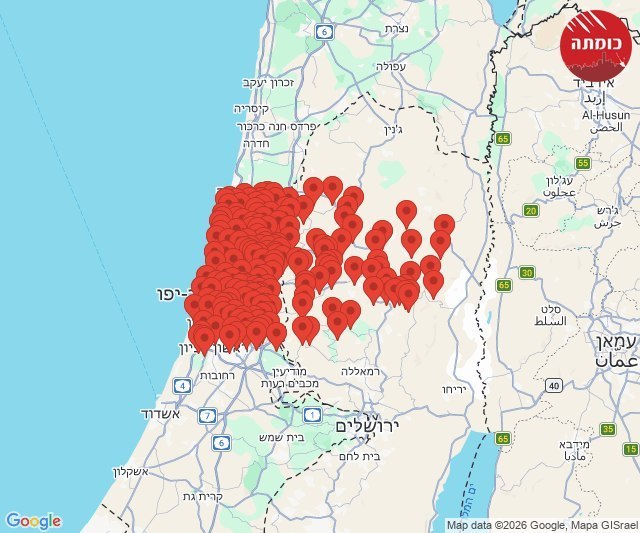 08:24 Alertes dans le centre, la région de Jérusalem et en Samarie