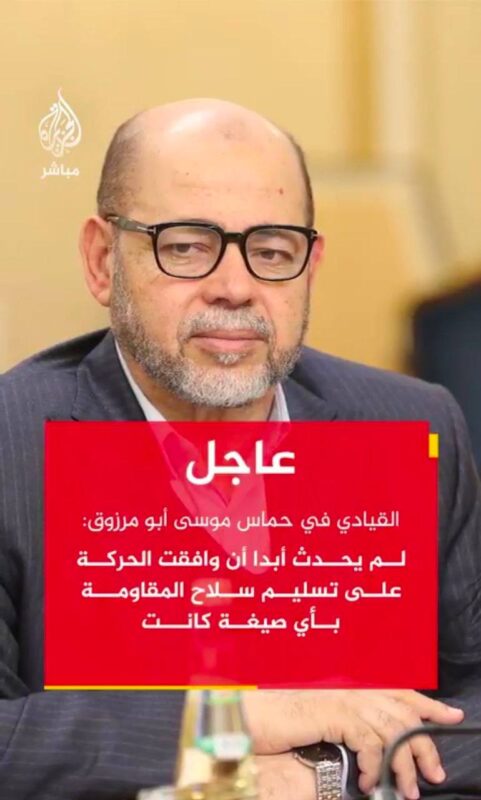 Un haut responsable du Hamas, Moussa Abou Marzouk, dans l’interview d’Al Jazeera :