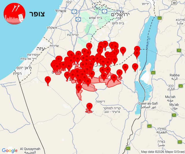 Hier 23:37 Les alarmes de Beer Sheva ont été déclenchées suite au départ d’un intercepteur ; aucun avertissement préalable n’a donc été reçu.
