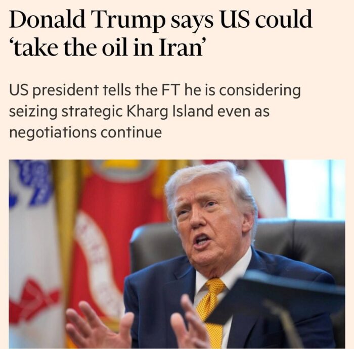 Pour être honnête, ce que j’aimerais le plus faire, c’est prendre le contrôle du pétrole iranien, mais certaines personnes stupides aux États-Unis disent : « Pourquoi faire ça ? ». Ce sont des gens stupides.