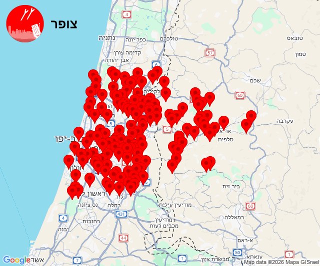 - 07:54 Des sirènes retentissent dans le bloc de Dan, en Sharon, en Samarie et en Shfela