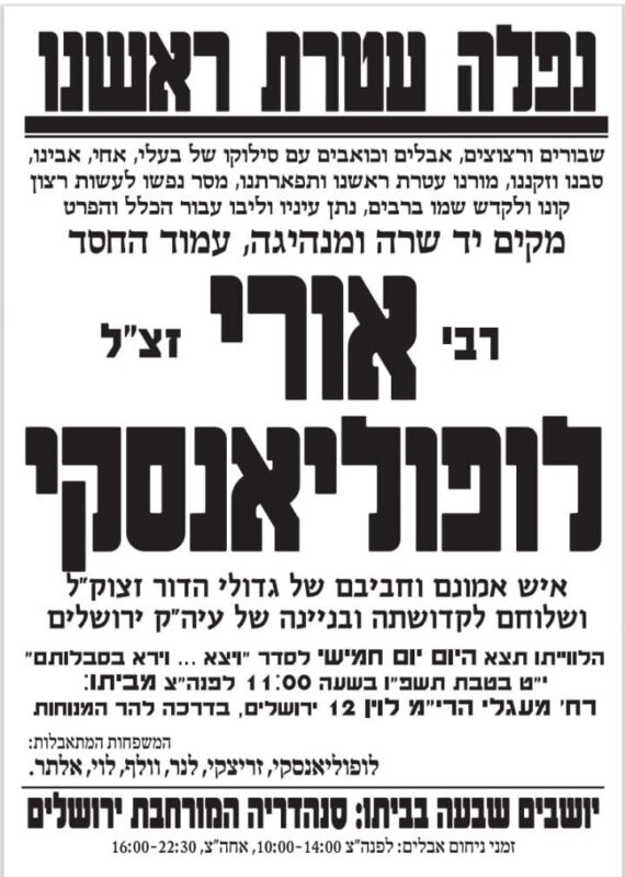 • 00:50 Uri Lupoliansky, ancien maire de Jérusalem, est décédé à l’âge de 74 ans