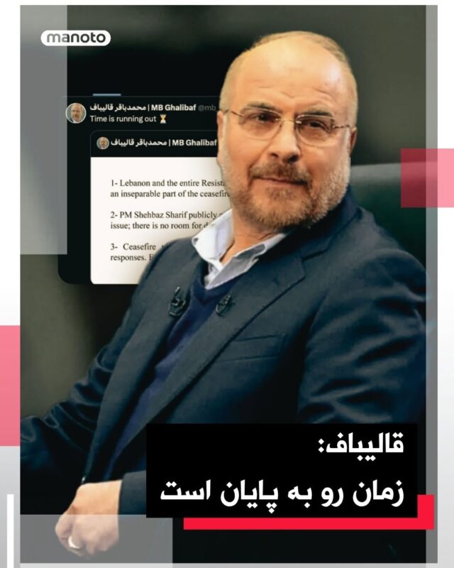 08:14 Mohammad Bagher Ghalibaf a reposté son message précédent sur le réseau X en écrivant « Le temps est presque écoulé » et a simultanément fait référence à certains points de la proposition de cessez-le-feu temporaire.