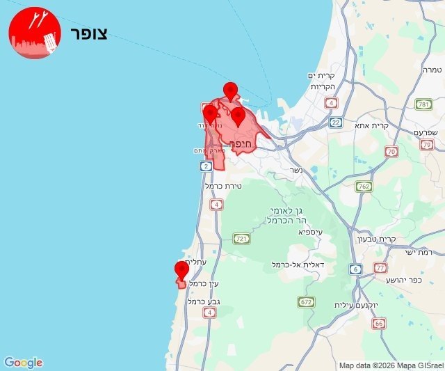 Hier 23:07 Tirs sur Haïfa et la région : certains projectiles ont été interceptés, les autres ont explosé en zone dégagée.