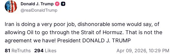 — The Iran Watcher 🇮🇷 (@TheIranWatcher) April 9, 2026