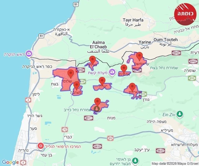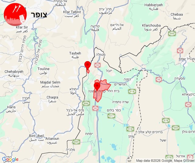 08:04 Alerte à Misgav Am, Kiryat Shmona