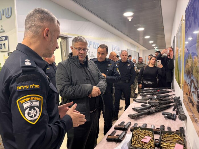 Hier 22:09 Le ministre Ben Gvir inspecte des armes que la police israélienne a saisies aux Bédouins du Néguev et aux trafiquants d’armes.