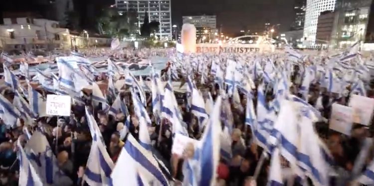 Manifestation contre la réforme judiciaire à Tel Aviv : notez qu'il y a plus de drapeaux que pour célébrer l'Etat d'Israël