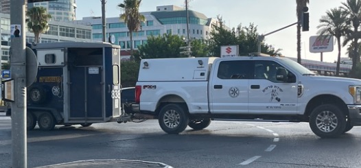 Police montée arrivant sur le lieu de la manifestation avec des chevaux