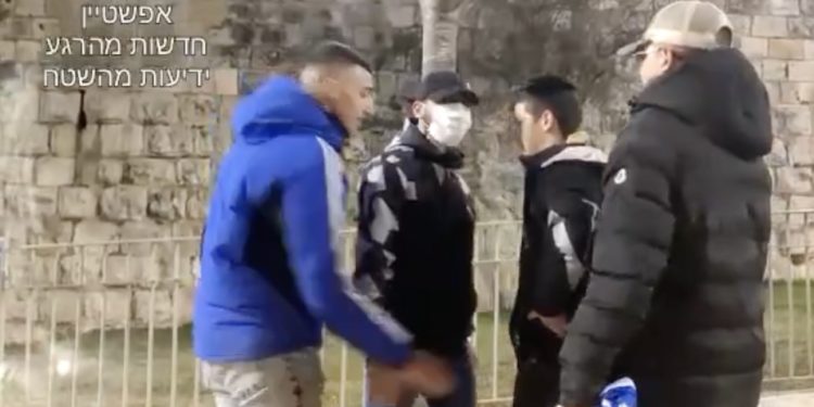 Un adolescent juif tient tête à une bande d’arabes à la porte de Damas, dans la vieille ville de Jérusalem