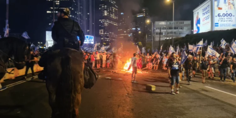 Les manifestations de la gauche se sont poursuivies tout au long de la soirée de mercredi jusque tard dans la nuit pour protester contre la mise à la retraite du surintendant Ami Ashad, suite à la décision de le transférer au poste de chef de la division de la formation. Mercredi soir, la police fait savoir que pendant l’évacuation des manifestants sur l’autoroute Ayalon Sud, l’un des manifestants a frappé un policier à la tête avec son casque. Le suspect a été arrêté.